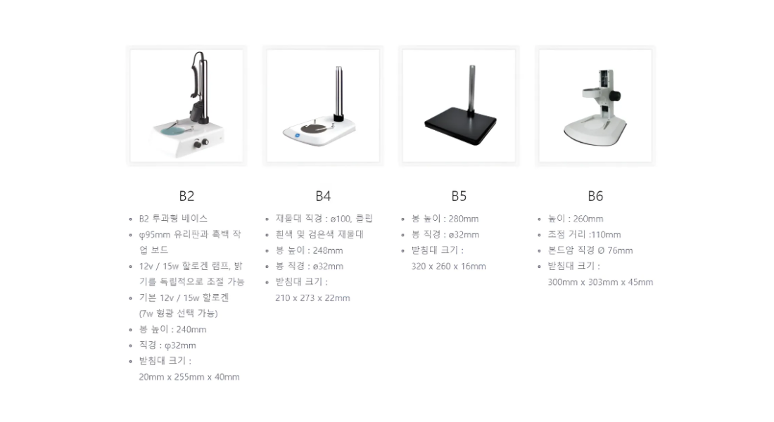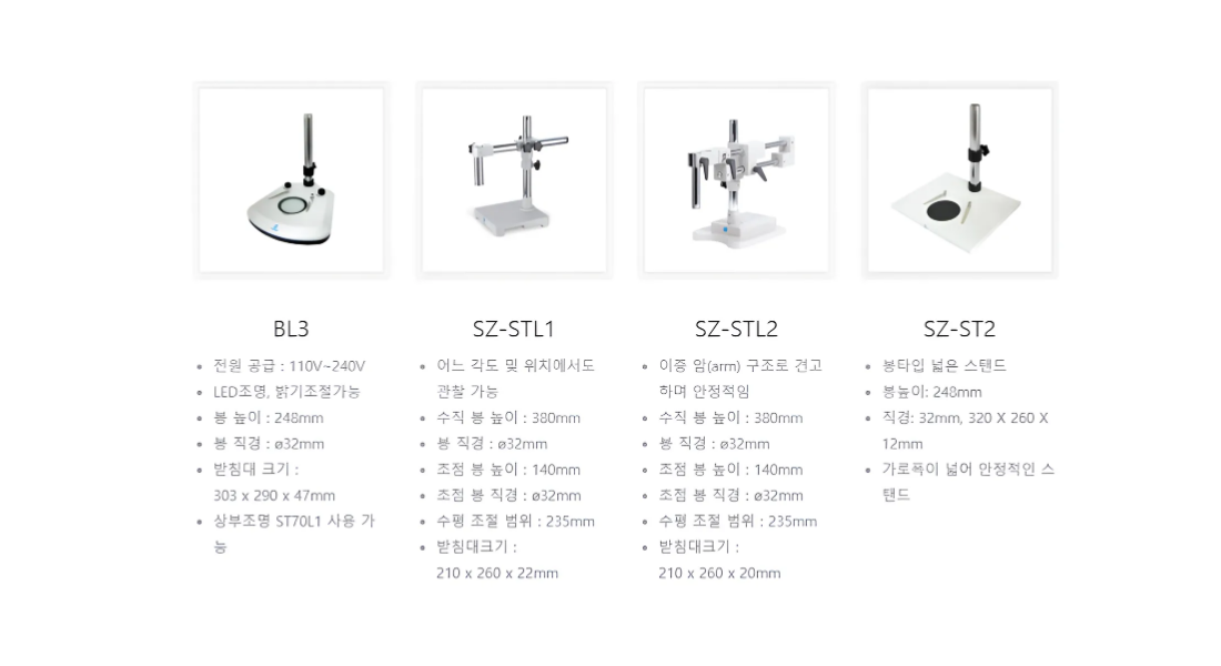 기본스탠드 외에 LED 투과/반사, Large 사이즈 스탠드, 유니버셜 타입 등